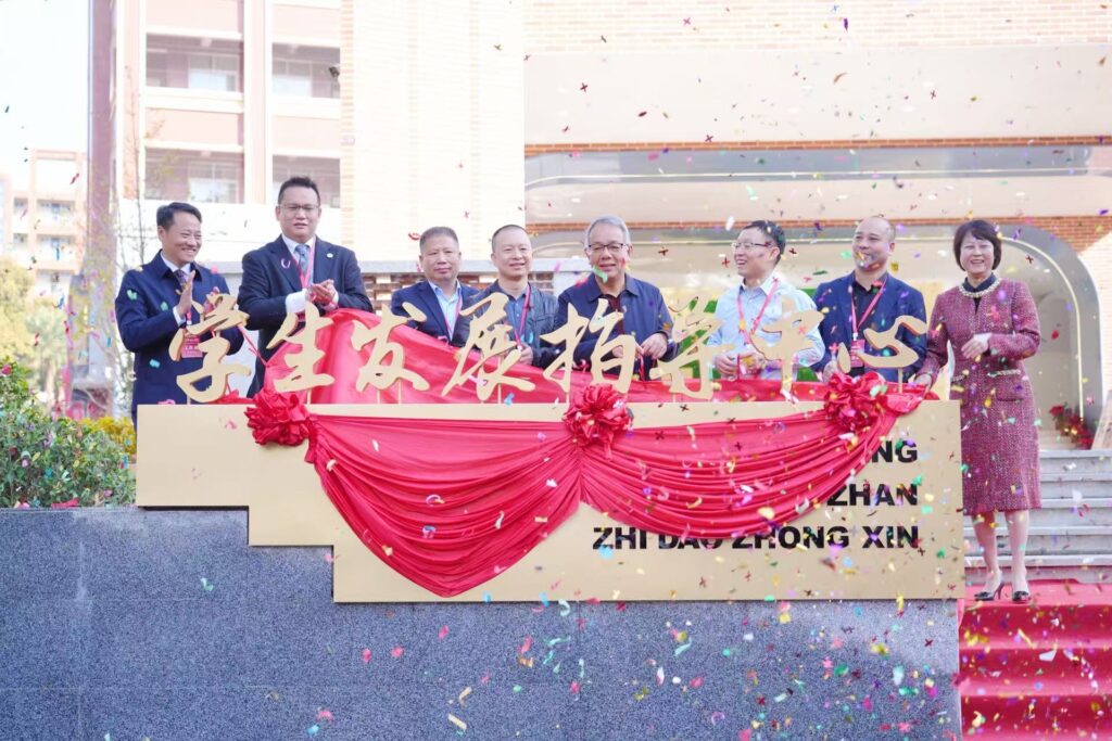 随后,学生发展指导中心正式揭幕。在仪式中,俞钦会长作为在日校友代表之一,共同参与了揭幕活动。仪式结束后,俞会长代表在日侨中校友会全体校友,向母校郑重捐赠礼品,并与母校领导合影留念,定格这一意义非凡的瞬间。